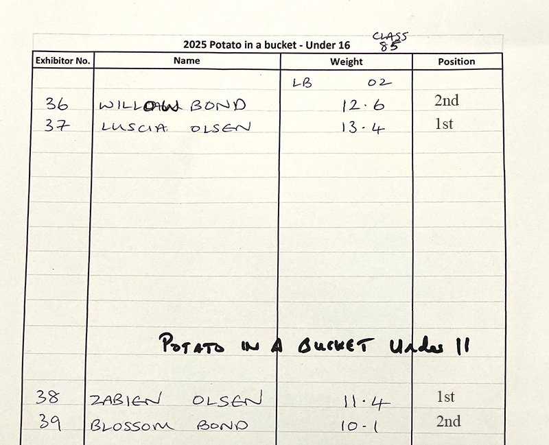 Potato in a Bucket Here are the weights from the potato in a bucket competition! 2025 Results 2024 Results 2023 Results